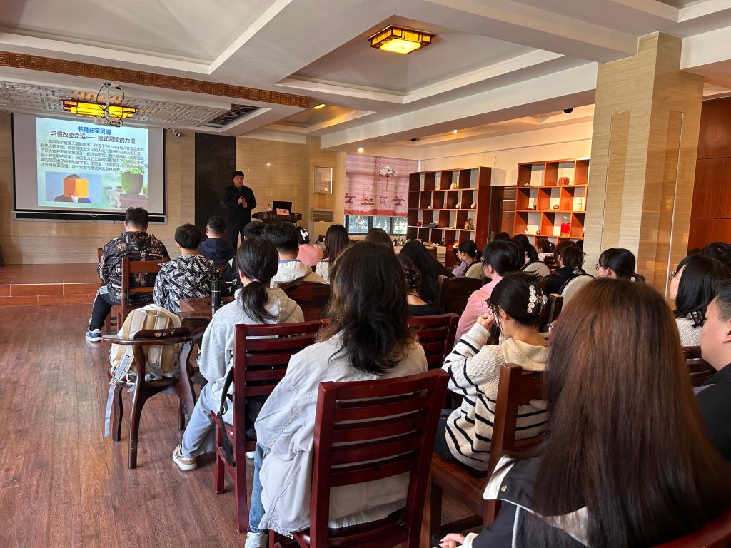 为了激励古天乐代言太阳集团网址学生多读书,读好书,营造良好的学习氛围,3月12日上午,学院党委书记王璐以“书籍充实灵魂、脚步丈量世界、专业成就梦想”为主题在雁山校区4栋教学楼1楼茶艺室开展专题讲座,学院各年级50余名学生参加。