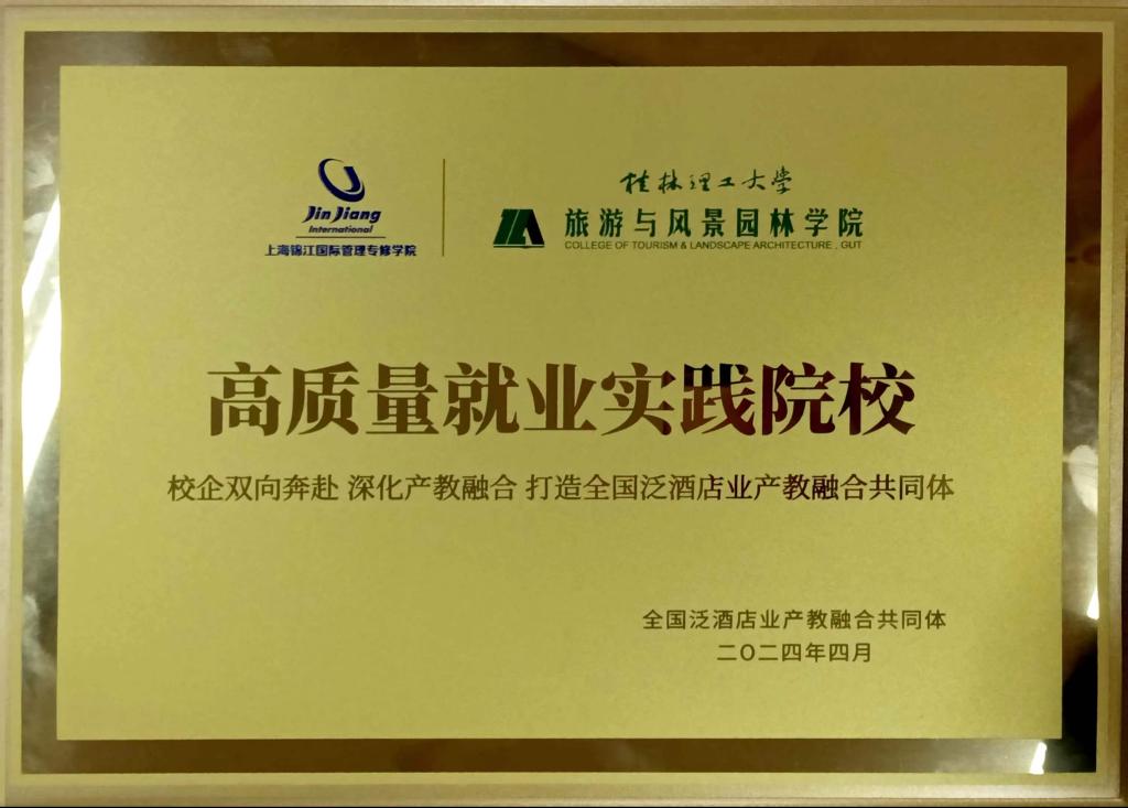 此次论坛主题为“产教融合‘育’见美好”,由锦江国际集团牵头主办,全国100余所院校参加,就校企共育实践、校企合作新模式等多元议题进行了深入探讨,旨在构建人才链与产业链紧密结合的新型合作模式,共育新质生产力,培养具备国际视野、专业素养和人文关怀的新时代酒店业精英,加快形成校企优势互补、产教高度融合发展格局。论坛设置了颁奖授牌环节,学院获评“高质量就业实践院校”。