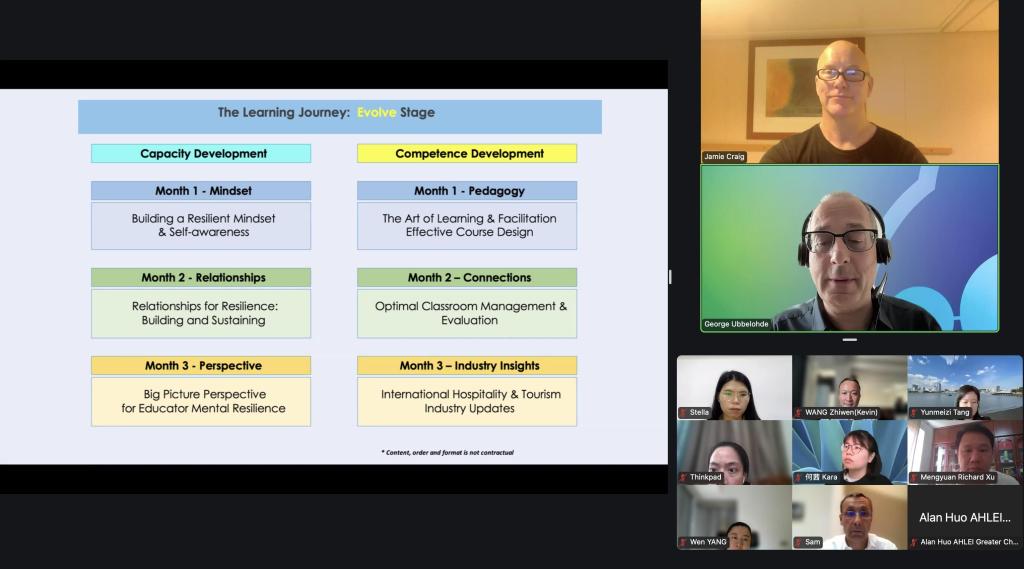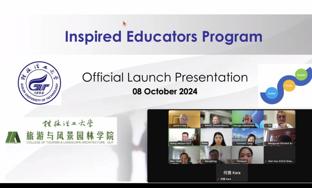 2024年10月8日,学院与国际认证官乔治先生(George Ubbelohde)领衔的Xcell edu国际团队联合举办的“激励教育者计划”(Inspired Educators Program,简称IEP)启动会通过线上会议顺利举行。学院院长郑文俊教授、副院长王荣教授及 “智慧酒店服务与创新设计”教学团队和“数字景观”教学团队7名教师参与了本次启动会。此次会议旨在提升教师教学能力与水平,推动学院师资水平国际化进程,并通过加强国际合作促进教学与科研的全面发展。