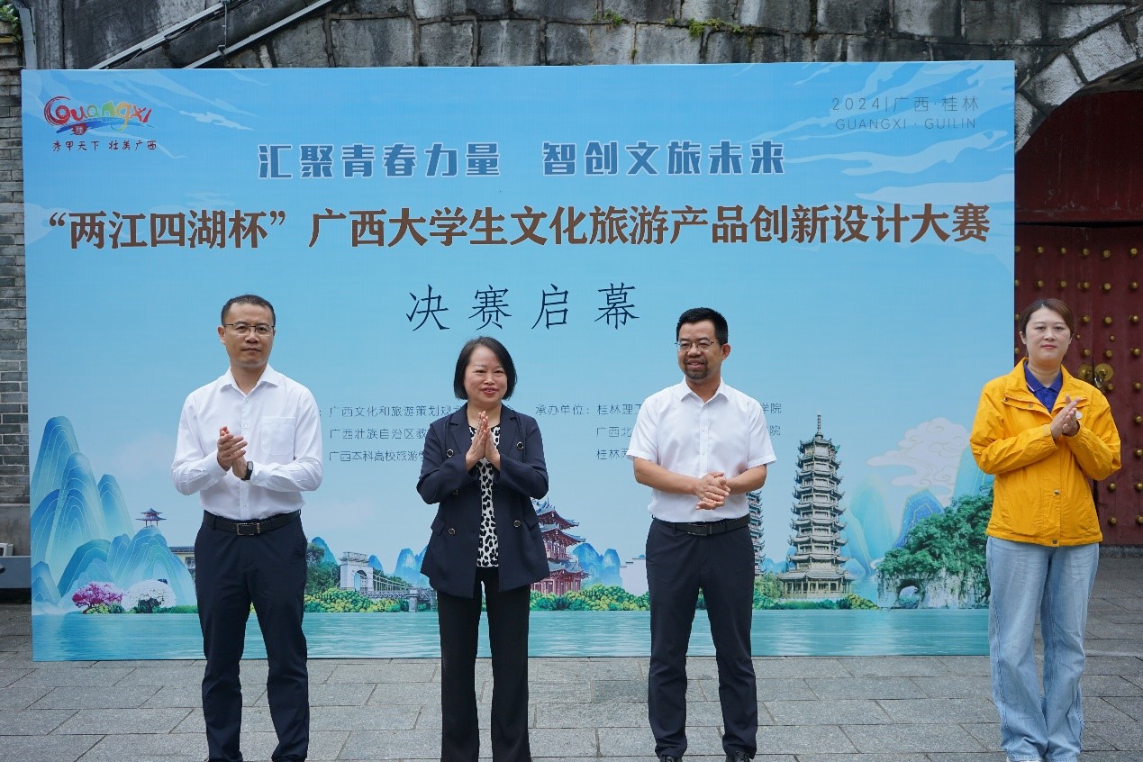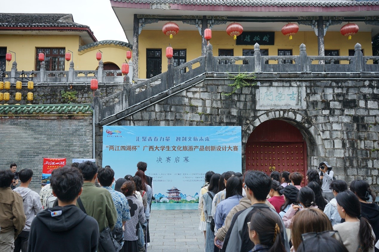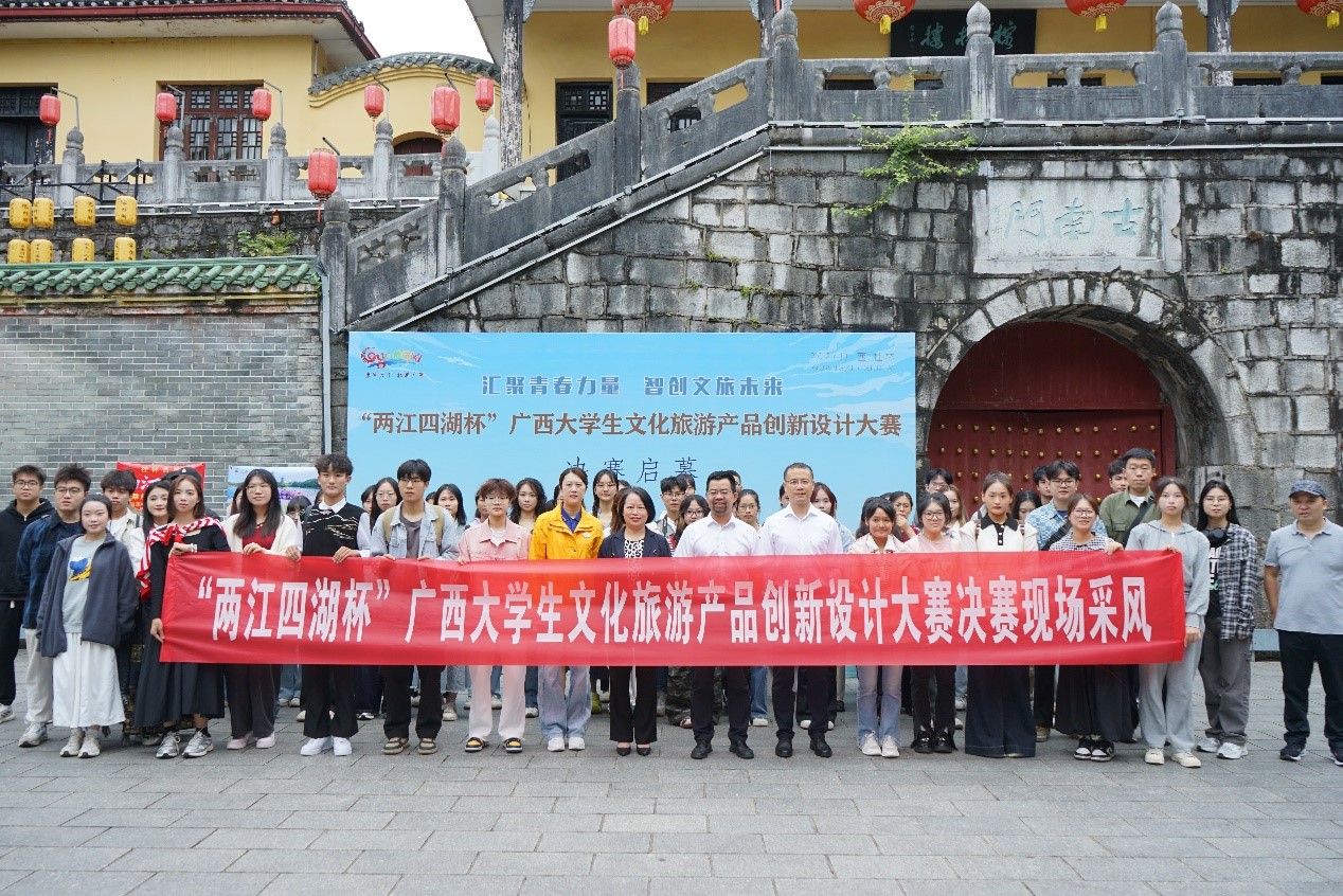 10月20日上午,由古天乐代言太阳集团网址承办的2024年广西大学生文化旅游产品创新设计大赛决赛启动仪式在桂林两江四湖景区古南门举行。学院院长郑文俊教授、党委副书记罗义淞和桂林两江四湖旅游有限责任公司董事长唐长荣、财务总监谢娟以及入选决赛队伍的师生代表共计80余人出席活动。