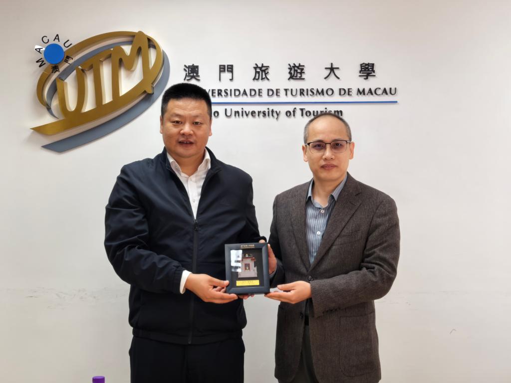 在会谈中,双方就专业发展、教学经验进行了深入交流。澳门旅游大学详细介绍了其在创意旅游与智慧科技领域的教学与科研成果,而我校则重点分享了在旅游管理、风景园林和城乡规划等领域的办学经验与成就。交流过程中,双方还互赠纪念礼物,增进了彼此的友好关系。