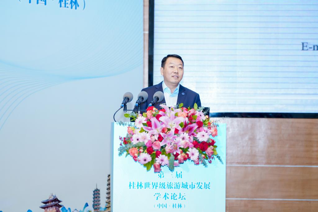 第二位出席论坛的专家是云南财经大学明庆忠教授。明教授在大会上做了题为“打造世界旅游名城发展思路与方略”的主旨报告,深入探讨了丽江古城成功打造世界旅游名城的五大优势:世界遗产级的独特资源、优越的区位优势、多重叠加的政策优势、响亮的品牌知名度以及多元化的旅游产品。他认为,这些优势为丽江打造世界旅游名城奠定了坚实基础。随后,明教授强调了打造世界旅游名城的巨大价值。他指出,这不仅能提升城市的内涵,还能增强城市的国际影响力,为区域发展提供强劲动力。在战略定位方面,明教授提出,遵循“国际化、高端化、特色化、智慧化”的理念,丽江采取“统筹谋划、有序推进;遵循规律、彰显特色;扬长补短、软硬结合;政府引导、社会参与;以人为本、主客共享”原则开展世界旅游名城建设。此外,明教授系统阐述了打造世界旅游名城的七条具体方略,并结合生动案例进行了深入分析,为桂林建设世界级旅游城市提供了可借鉴的经验。