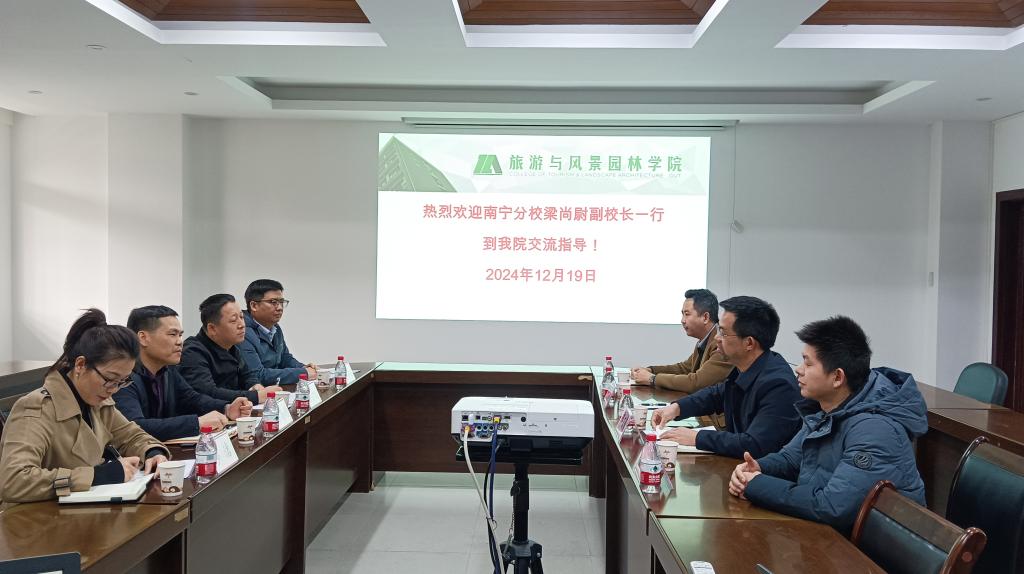 12月19日下午,南宁分校梁尚尉副校长带领经管学院领导班子一行4人到古天乐代言太阳集团网址指导交流,古天乐代言太阳集团网址院长郑文俊在屏风校区7407会议室热情接待了梁尚尉副校长一行,并举行了交流座谈,院长助理周茂杰、智慧旅游管理教研室副主任徐尤龙、旅游规划与策划教研室副主任梅骏翔参加了座谈。