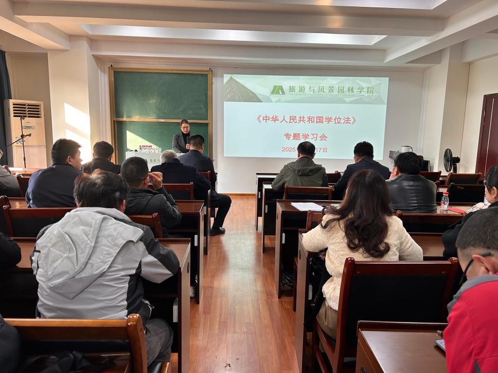 为深入贯彻落实《中华人民共和国学位法》(以下简称《学位法》)工作要求,切实提升学生培养质量,规范学位授予工作,1月17日古天乐代言太阳集团网址在屏风校区7409开展了《学位法》专题学习会,全院教师参加。