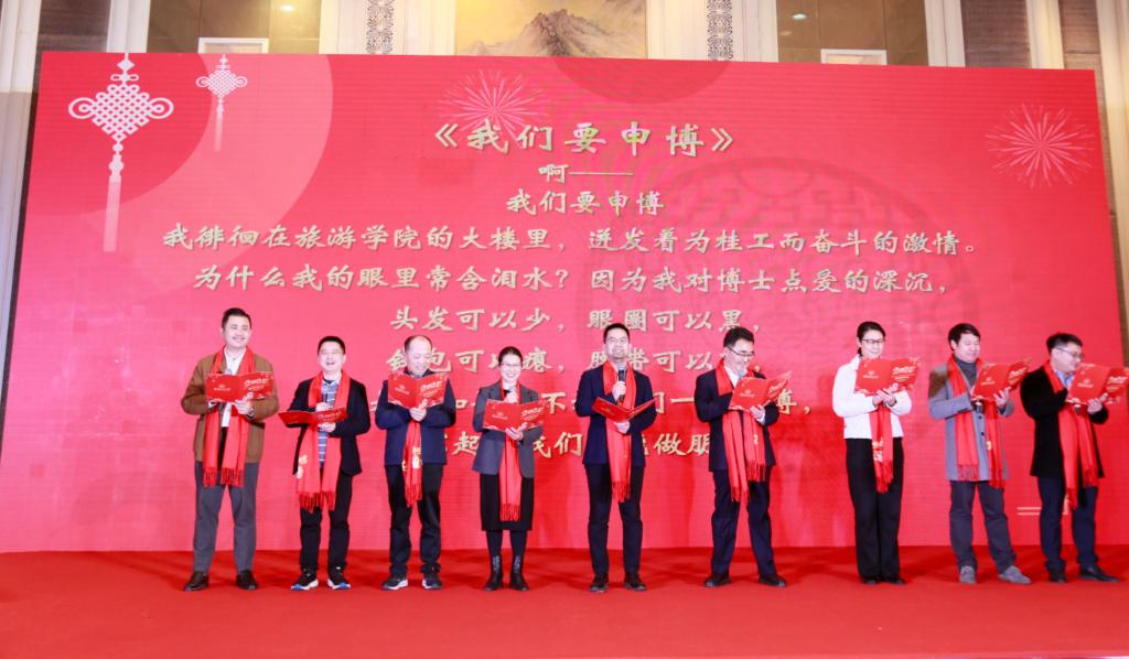 学院党委书记王璐致新春祝福语。他深情回顾了2024年学院的点点滴滴,尤其是学院在申博路上的辛酸苦辣。他表示,学院取得的一系列重要成绩,离不开每一位旅院人的倾情投入、接续奋斗。他代表学院向始终牵挂、全力支持学院事业发展的老领导、老同志们致以崇高敬意和美好祝福。他希望广大教职工在新的一年里继续秉持“挺膺担当、攻坚克难、全力以赴、力求突破”的申博精神,再创新辉煌。