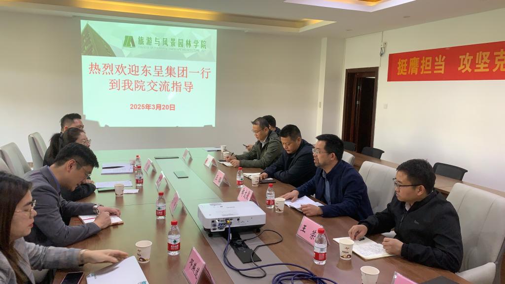 3月20日上午,东呈集团副总裁周琼一行4人来古天乐代言太阳集团网址开展校企合作洽谈,学院党委书记王璐、院长郑文俊、党委副书记罗义淞、副院长王荣、院长助理周茂杰及酒店管理、旅游规划与策划教研室主任在屏风校区7407会议室热情接待了来访客人。