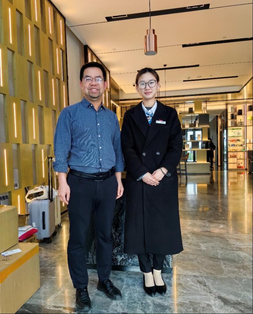 随后,郑文俊一行赴东呈集团宜尚酒店看望实习生,实地了解学生岗位适应情况与职业发展。企业充分肯定学生综合素质,表示将扩大实习规模;实习生代表分享实践收获,认为一线岗位锻炼有效提升了专业技能与职业素养。