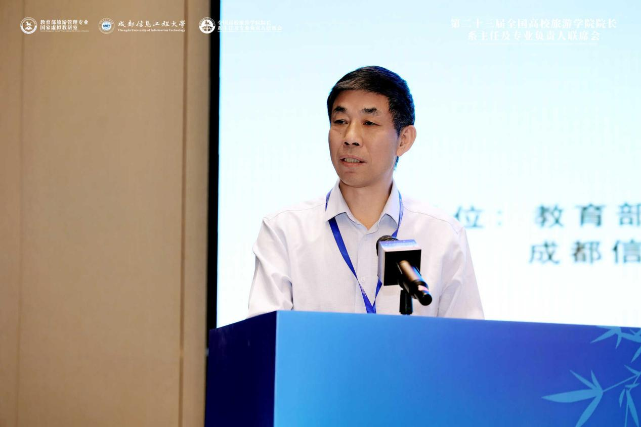 4月18日至20日,第二十三届全国高校旅游学院院长、系主任及专业负责人联席会在成都顺利召开,会议吸引了全国32个省市自治区及特别行政区的170余所高校的400余位专家学者参与。本次会议由教育部旅游管理专业国家虚拟教研室·全国高等学校旅游院校联盟、成都信息工程大学共同主办,成都信息工程大学管理学院承办,四川省等省市自治区高校旅游管理类专业教学指导委员会、湖北省人文社科重点研究基地旅游开发与管理研究中心、华中科技大学出版社、四川国际品牌传媒有限公司协办。会议围绕“全方位创新助推旅游教育强国建设”主题展开深度研讨,旨在推动旅游管理类专业人才培养体系革新。学校党委常委、副校长罗盛锋,学院讲座教授程道品和学院副院长王荣参加了会议。