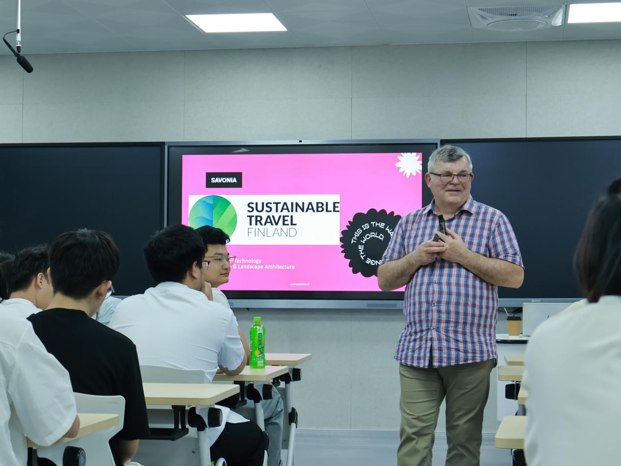 为进一步拓展学生国际视野,提升学生专业素养, 4月23日下午,芬兰萨沃尼亚应用科学大学(Savonia University of Applied Sciences)旅游系教授Jorma Korhonen应邀来访学院,为学院旅游管理与酒店管理专业本科生作题为《芬兰可持续旅游(Sustainable Travel Finland)》的专题讲座。