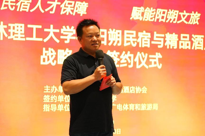签约仪式上,王璐表示,此次合作是学院深化产教融合、服务地方产业的重要举措。学院将充分发挥旅游管理、酒店管理等学科优势,以行业需求为导向,创新“产学研用”一体化培养模式,为阳朔民宿产业输送兼具理论素养与实践能力的复合型人才。