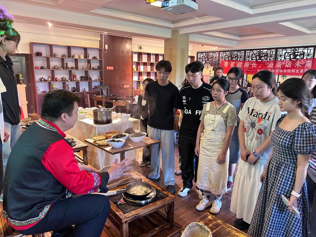 活动现场,师生们亲身实践,在茶香四溢中感受恭城油茶的非遗魅力。本次活动以茶为媒,通过面对面品油茶、话未来,师生交流学习心得、畅谈职业发展,既增进了师生情谊,也让师生在参与非遗文化体验和手工制作中学非遗、知非遗,将非遗文化更好地传承下去,进一步坚定文化自信。