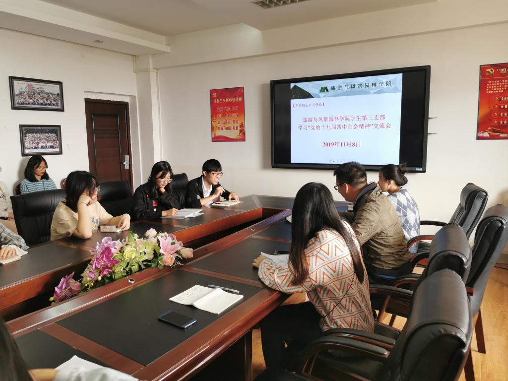 2019年11月8日12:30,古天乐代言太阳集团网址本科生第三党支部全体党员在04509会议室开展“十九届四中全会”会议精神的学习交流会,会议由支部书记朱司甲老师主持。