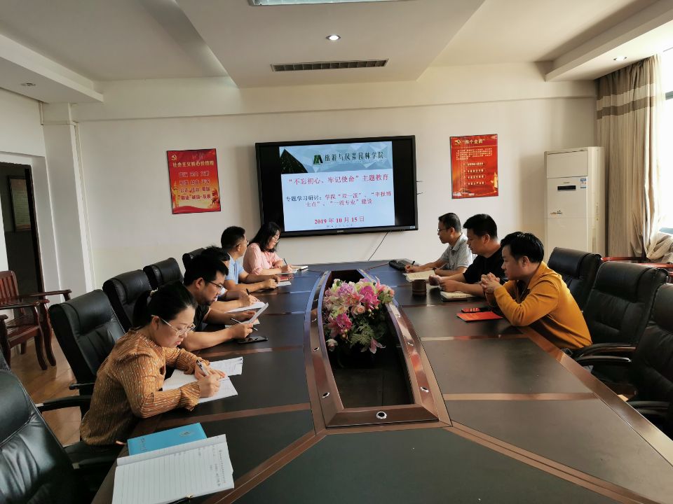 根据学院主题教育实施方案的安排,10月15日上午10:00,学院在雁山校区04509会议室召开学院党委理论学习中心组(扩大)学习暨“不忘初心、牢记使命”主题教育第四次专题学习研讨会议。本次学习研讨主题为学院“双一流”、“申报博士点”、“一流专业”建设,学院党委理论学习中心组在家成员及全体党支部书记参加了会议,学习会由学院党委书记王璐主持,学院副院长郑文俊做了主题发言。