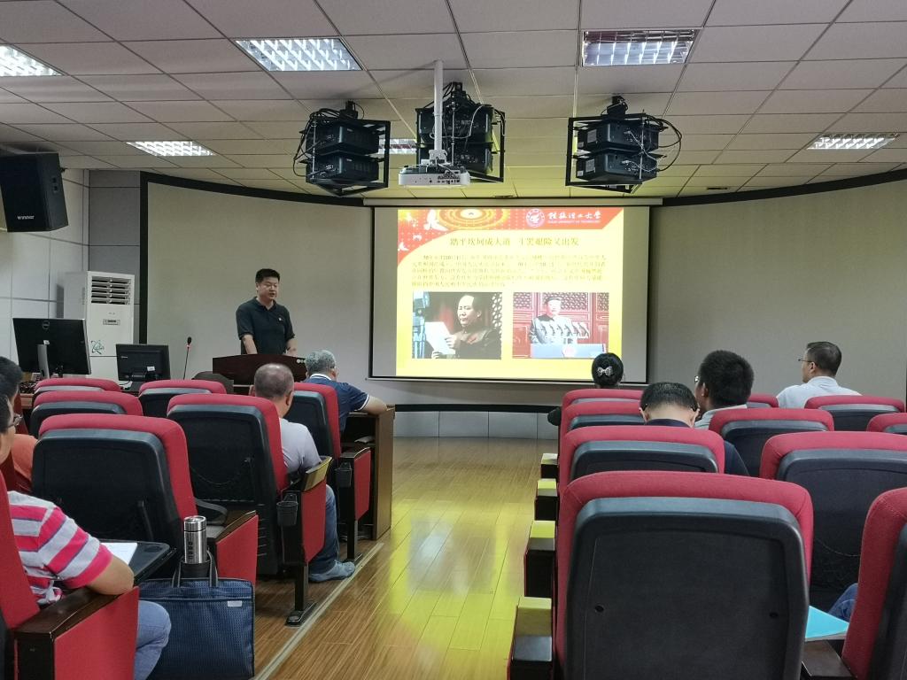10月8日下午14:30分,学院党委书记王璐给全院教职工党员以及部分学生党员上了一堂专题党课:不忘初心、牢记使命——学习领会习近平总书记在庆祝中华人民共和国成立70周年大会上的重要讲话。