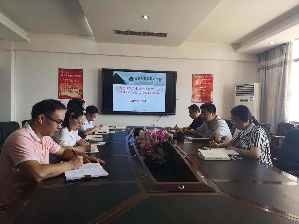 根据学院主题教育实施方案的安排,9月24日上午10:30,学院在雁山校区04509会议室召开学院党委理论学习中心组(扩大)学习暨“不忘初心、牢记使命”主题教育第二次专题学习研讨会议。本次学习研讨主题为“守初心、持恒心、强信心”,学院党委理论学习中心组成员及全体党支部书记参加了会议,学习会由学院党委书记王璐主持。