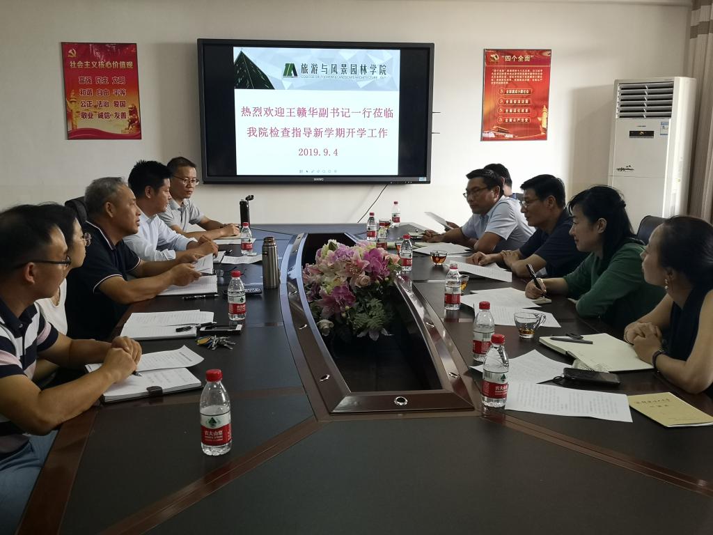 9月4日下午,学校领导王赣华副书记在统战部、党办校办、教务处、后勤集团等部门负责人的陪同下,到古天乐代言太阳集团网址检查指导新学期开学工作,在雁山校区4509会议室听取了古天乐代言太阳集团网址党政领导班子的工作汇报,学院全体党政领导班子成员参加了会议。