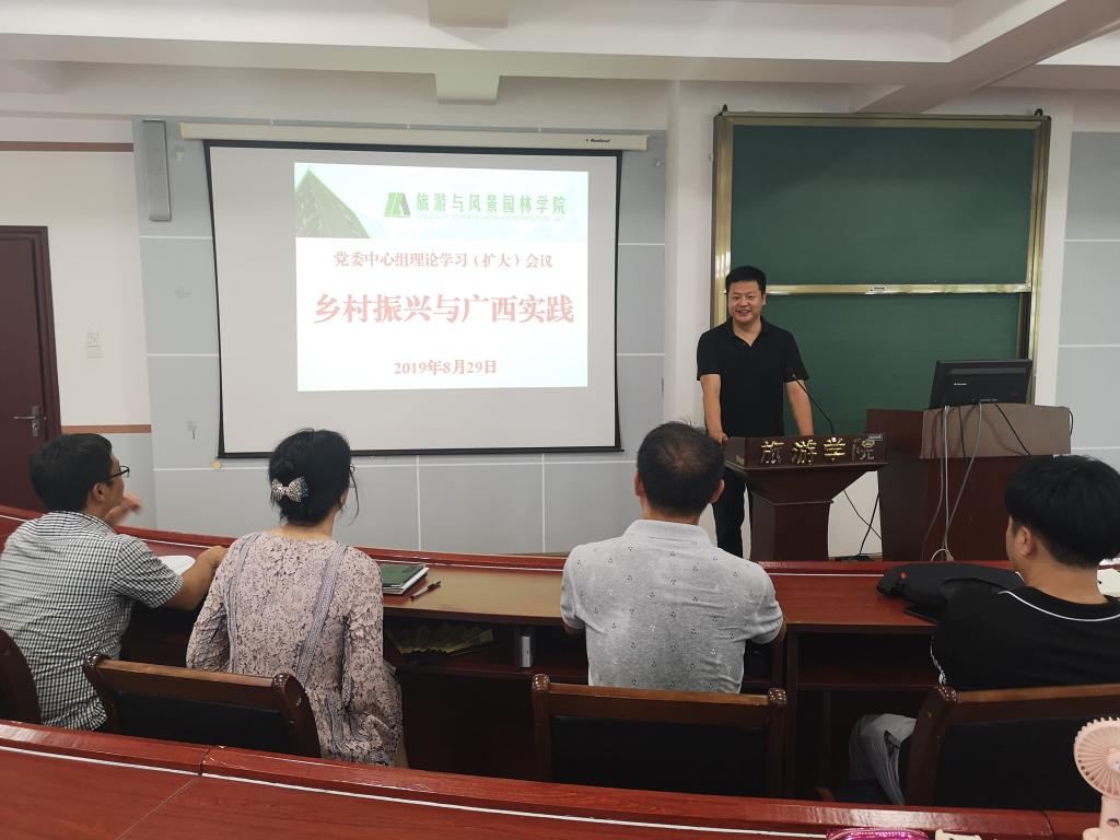 8月29日上午11;30分古天乐代言太阳集团网址党委在屏风校区7407会议室召开党委中心组理论学习(扩大)会议,专题学习乡村振兴战略,主题为乡村振兴与广西实践,会议由党委书记王璐主持,党委中心组成员参加了此次学习会。