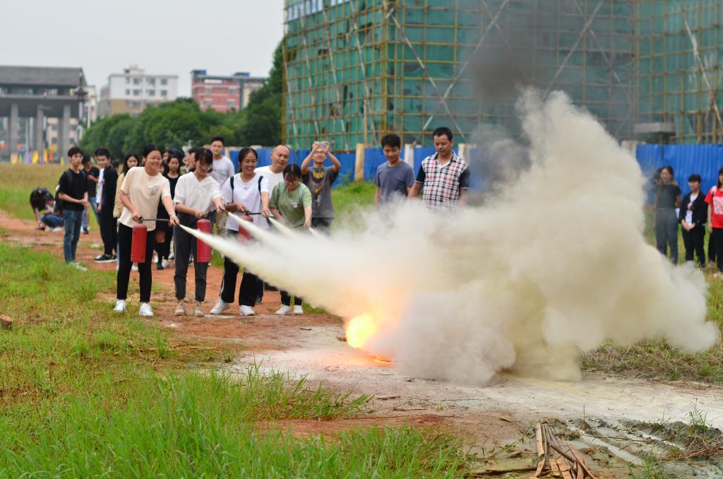 学生扑救明火演练