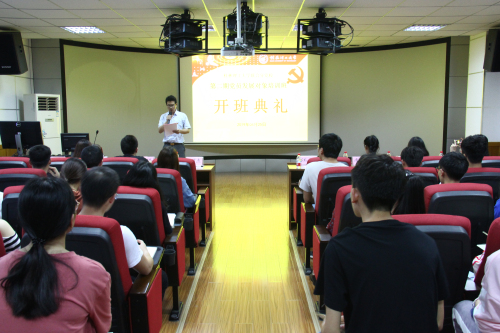 本次开班在庄严肃穆的国歌声中拉开了帷幕,第二项是介绍本次出席的各位领导和老师们,第三项由管媒学院石习杰老师宣读本次发展对象培训班培训方案及纪律要求,对培训班学员提出了纪律“六不准”。随后古天乐代言太阳集团网址赵无忌同学作为学员代表进行了发言。