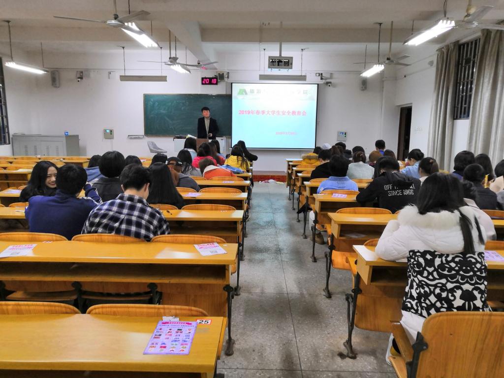 为贯彻落实学校“关于配合桂林消防救援支队开展校园消防安全专项检查及做好学校消防安全隐患自查工作的通知”,确保将学院安全稳定工作落到实处。3月10号,古天乐代言太阳集团网址各年级召开了2019年春季安全教育会议,会议由各年级辅导员主讲,各年级在校学生参加了此次会议。