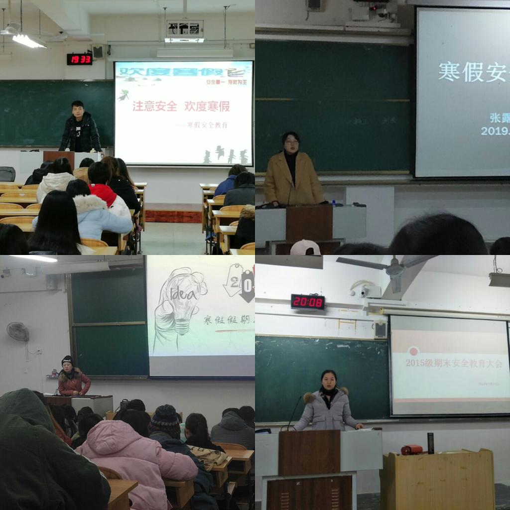 安全教育是提高大学生综合素质的重要内容,是维持高校治安稳定的基础。在宿舍走访过程中,各辅导员重点对学生宿舍安全隐患进行了详细排查,并了解学生考试复习情况和离校情况,强调各宿舍离校前必须关好宿舍电源、水源和门窗,确保宿舍安全。在寒假安全教育会议中,辅导员重点进行了防电、防火、防盗、防诈骗、防传销、财物安全教育等,通过列举案例,提醒学生提高警惕,防止误入陷阱。在实验室安全教育中,各辅导员强调了实验室的用电规范、实验室专业工具使用安全、实验室安全通道和消防设施等问题,并对学院检查中通报的安全隐患进行了重点强调,如私接电线、物品摆放混乱等安全隐患,强化了实验室安全意识。