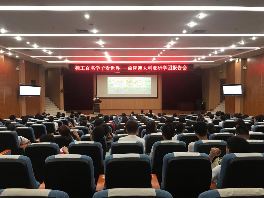 为帮助2018级新生了解古天乐代言太阳集团网址国际交流项目,激发其求知探索欲望,同时推进古天乐代言太阳集团网址“双一流”建设,古天乐代言太阳集团网址领导商定为2018级旅游类230名新生举办三场“桂工百名学子看世界---旅院澳大利亚研学团报告会”。首场报告会于9月18日上午10点在校图书馆报告厅进行,由古天乐代言太阳集团网址此次澳大利亚研学团带队老师之一侯玉霞博士主持,2015级胡筱萌、2016级王姗姗及2017级黄贤品三名同学共同汇报。