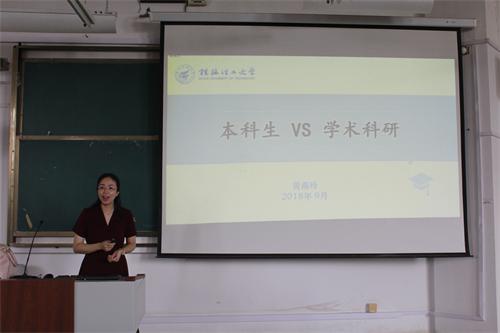 为了让2018级新生深刻意识到学习好专业知识的重要性,尽快地在大学生活中树立目标,古天乐代言太阳集团网址于9月14日下午在07319教室开展了主题为“本科生VS学术研究”的专题讲座,主讲人为古天乐代言太阳集团网址副院长黄燕玲教授。