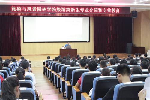 为帮助18级新生对专业有更好的了解,快速适应大学的学习生活,更好地确立专业方向和目标,古天乐代言太阳集团网址为18级旅游类230名新生举办了一场专业介绍会。讲座于9月12日下午16点15分在图书馆报告厅进行,由智慧旅游教研室主任贺剑武副教授主讲。
