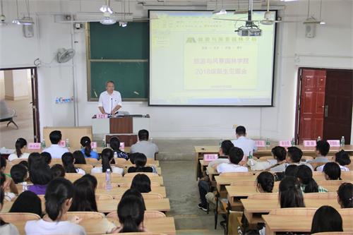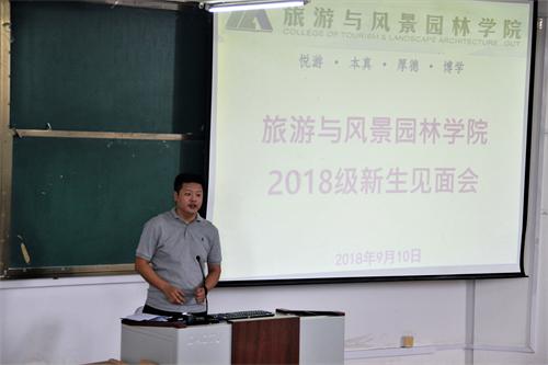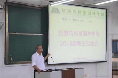 吴忠军院长首先对全体新生的到来表示热烈的欢迎,并向新生们讲述了学院的办学历史,发表了自己对专业的认知以及对旅游业和风景园林专业的展望,同时,鼓励新生认真学习、勇于实践,提高自身能力,树立并坚定理想,做好对大学四年及今后人生的规划。随后,老生代表孙文强同学和新生代表于长乐同学分别进行了发言。