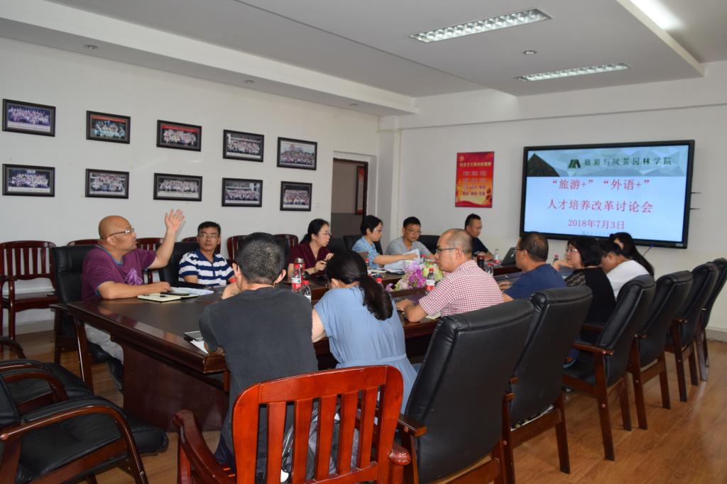 7月3日上午,古天乐代言太阳集团网址和外国语学院在雁山旅院会议室围绕 “旅游+”、“外语+”复合型人才培养改革举行讨论会。外国语学院副院长胡金、陈湘柳及日语、英语专业教研室主任、教师,古天乐代言太阳集团网址副院长黄燕玲、副书记叶婷及王志文、梁福兴、李广宏等五个教研室主任及教师代表参会,会议由黄燕玲副院长主持。