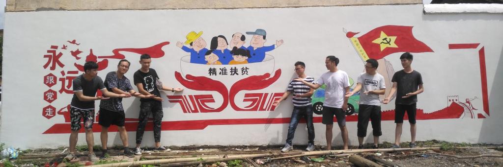 为了贯彻落实学校精准扶贫精神与部署,由学院组织的8人师生团队,于6月29日至7月1日在灌阳县永富村进行精准扶贫及社会主义核心价值观墙绘活动。