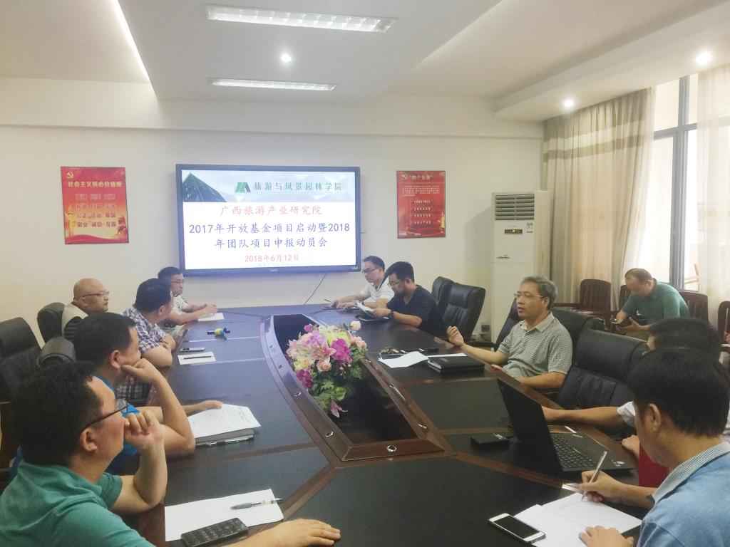 6月12日下午,广西旅游产业研究院在雁山校区致远楼04509会议室组织召开了广西旅游产业研究院2017年开放基金项目启动暨2018年团队项目申报动员会,学院院长吴忠军教授、副院长郑文俊教授、黄燕玲教授,院长助理、研究院常务副主任段文军教授及2017年项目立项者参加了此次会议,会议由段文军教授主持。