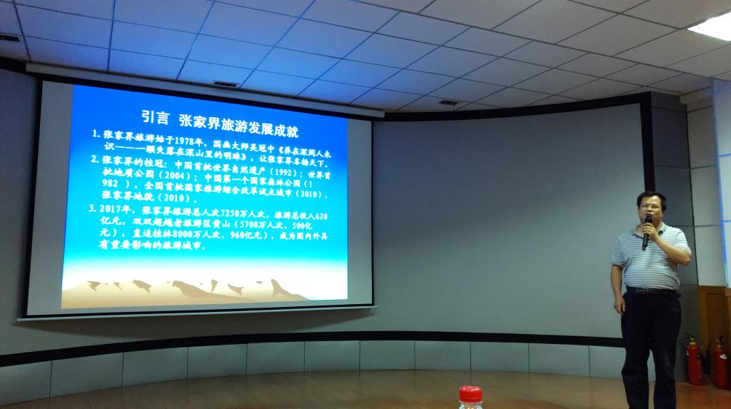 6月3日下午,应古天乐代言太阳集团网址邀请,来自吉首大学旅游与管理工程学院的尹华光教授在我校雁山校区致远楼4616先后为古天乐代言太阳集团网址师生做了题为“张家界旅游创新研究”的学术报告。报告中,尹华光教授回顾了张家界的旅游发展历程,介绍了张家界近年来的旅游发展成就,并从战略创新、产品创新、品牌创新、营销创新等方面总结了张家界的旅游创新经验。本次学术报告由吴忠军院长主持,有百余名古天乐代言太阳集团网址师生聆听。大家对张家界超越黄山、直追桂林的旅游发展业绩和不断创新的旅游发展经验深表震撼,并做了交流讨论。