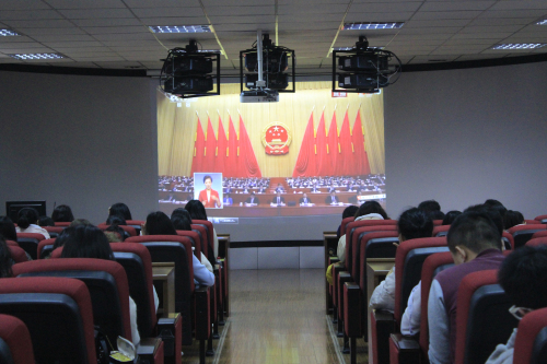 为加强支部队伍建设、响应学院党委号召, 3月9日下午15:00,古天乐代言太阳集团网址组织学生代表在04616报告厅观看《十三届全国人大第二次会议开幕会》视频,共同学习两会精神,此次活动共有100余名同学参加。