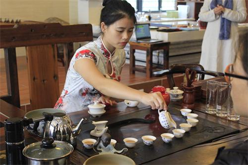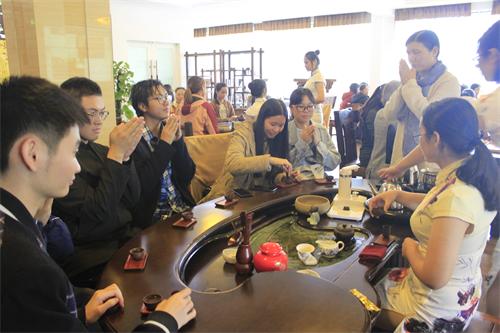 讲座进行过程中,琴音铮铮,茶香袅袅,同学们一边品茶,一边认真听着讲座,对博大精深的中国茶文化表现出了浓厚的兴趣,就茶叶的保存和冲泡茶叶等相关话题积极提出自己的见解和疑问。在最后科学泡茶尝试与茶汤品鉴的环节中,同学们对清香的茶汤和茶艺师们优美的动作赞不绝口,并积极参与到动手冲泡茶叶的实践中来,全场气氛活跃。