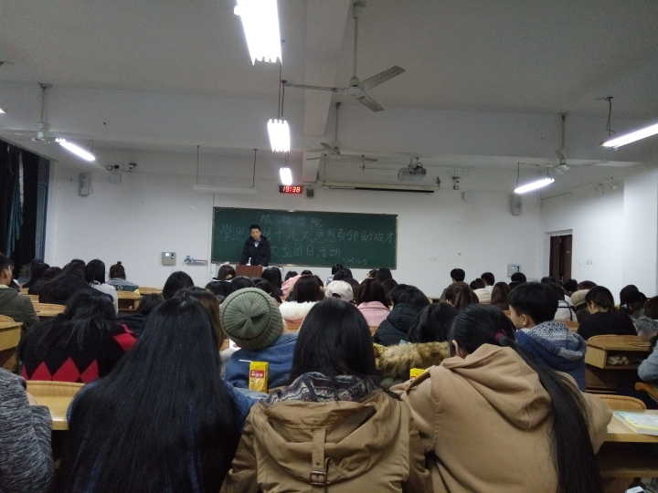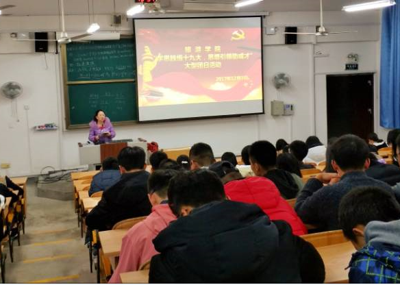 活动伊始,各年级辅导员组织学生再次对十九大报告进行了学习。学习过程中,学生听讲认真,及时做笔记。学习结束后,学生代表上台对“十九大”报告内容发表了自己的意见:“十九大报告总结了过去五年工作和历史性变革,同时也阐述了未来我国建设的主要方向以及发展目标,令人无比自豪且对我国的发展充满了信心”。最后,各辅导员就主题内容和学生进行了互动,现场互动气氛热烈。