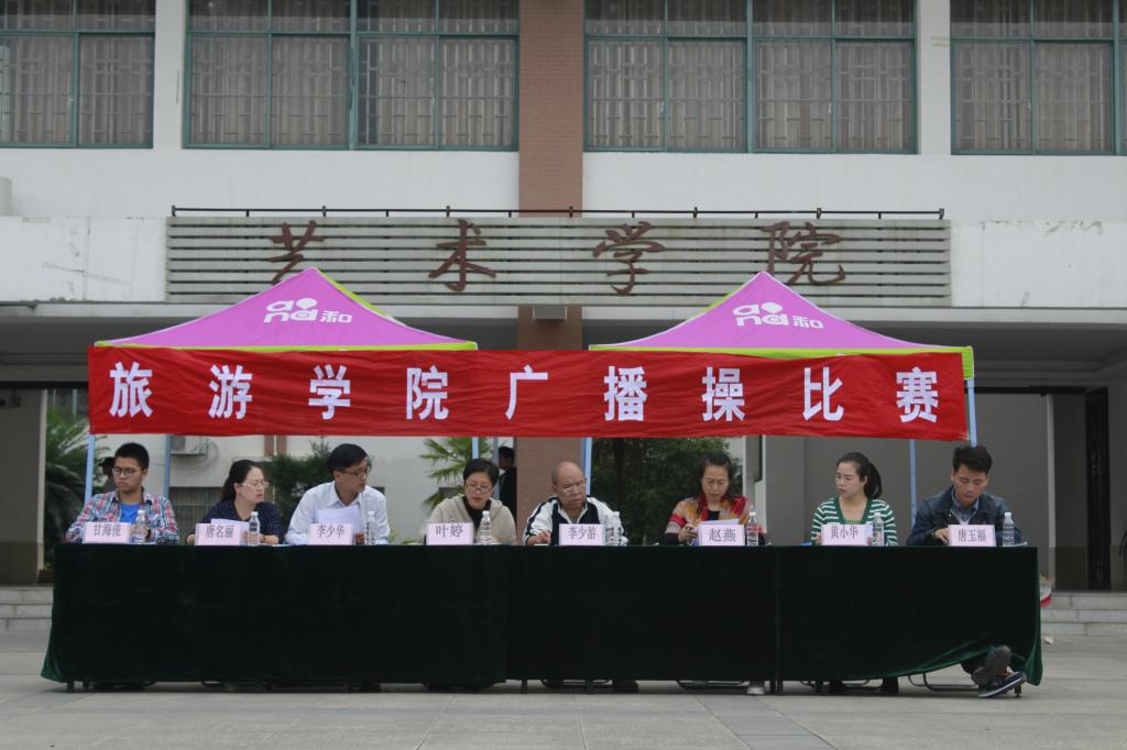 2017年11月5日下午三点整,旅游学院广播操比赛在3栋广场正式开赛。本次比赛评委嘉宾有旅游学院党委书记李少游老师,党委副书记叶婷老师,中心实验室主任赵燕老师,团委书记李少华老师,15、16、17级辅导员黄小华、唐玉福与唐名丽老师。