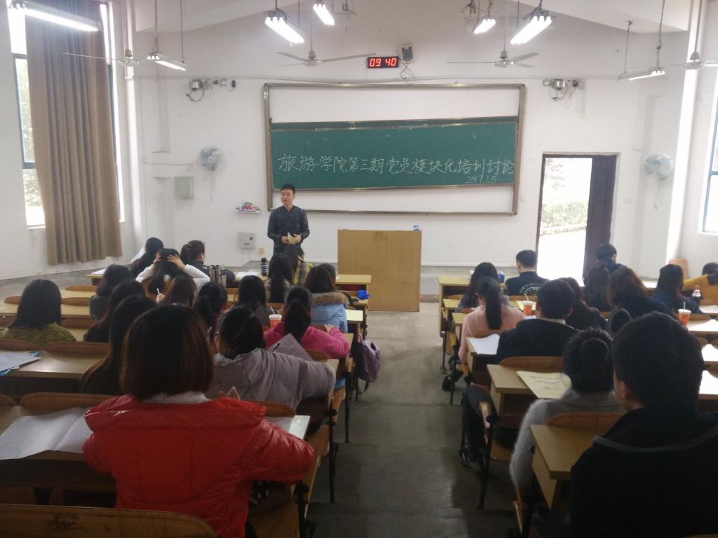 2017年1月5日上午9:30,古天乐代言太阳集团网址在04110教室召开第三期大学生党员模块化培训专题讨论,根据学校党委组织部要求,此次讨论主要有两个主题:一是大学生党员应如何自觉把个人的理想追求融入国家和民族的事业中,做走在时代前列的奋进者和开拓者;二是大学生党员如何在学风建设中发挥先锋模范带头作用,以实际行动带动广大同学培育优良班风学风,古天乐代言太阳集团网址全体在校学生正式党员参与了此次讨论。会上,各位学生党员踊跃发言,各抒己见,场面十分热烈。