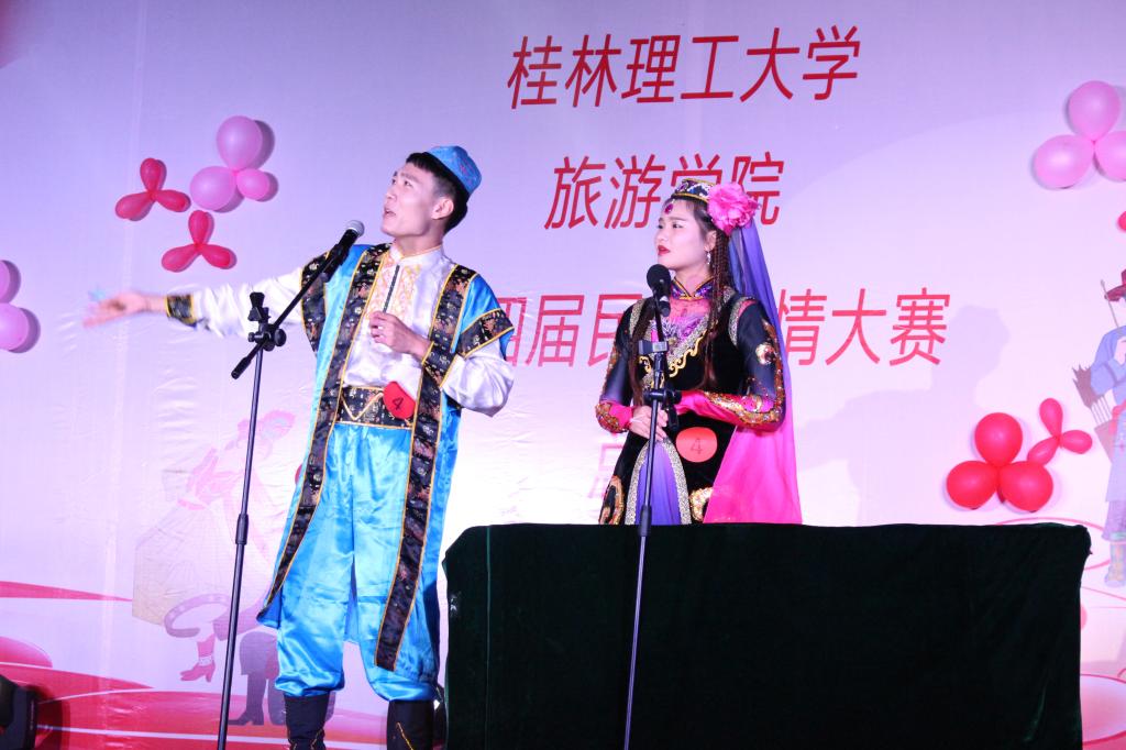 为弘扬民族传统文化、传承民族特色经典、加深各民族同学间的情感,促进和谐校园的形成, 12月10日晚19:00点,由旅游学院主办、旅游学院团委学生会承办的“第四届民族风情大赛总决赛”在我校雁山校区三栋广场举行。旅游学院民族学与旅游经济教研室石春燕博士、团委书记李少华、辅导员唐名丽、黄小华、张露萍、唐玉福莅临比赛现场并担任评委。