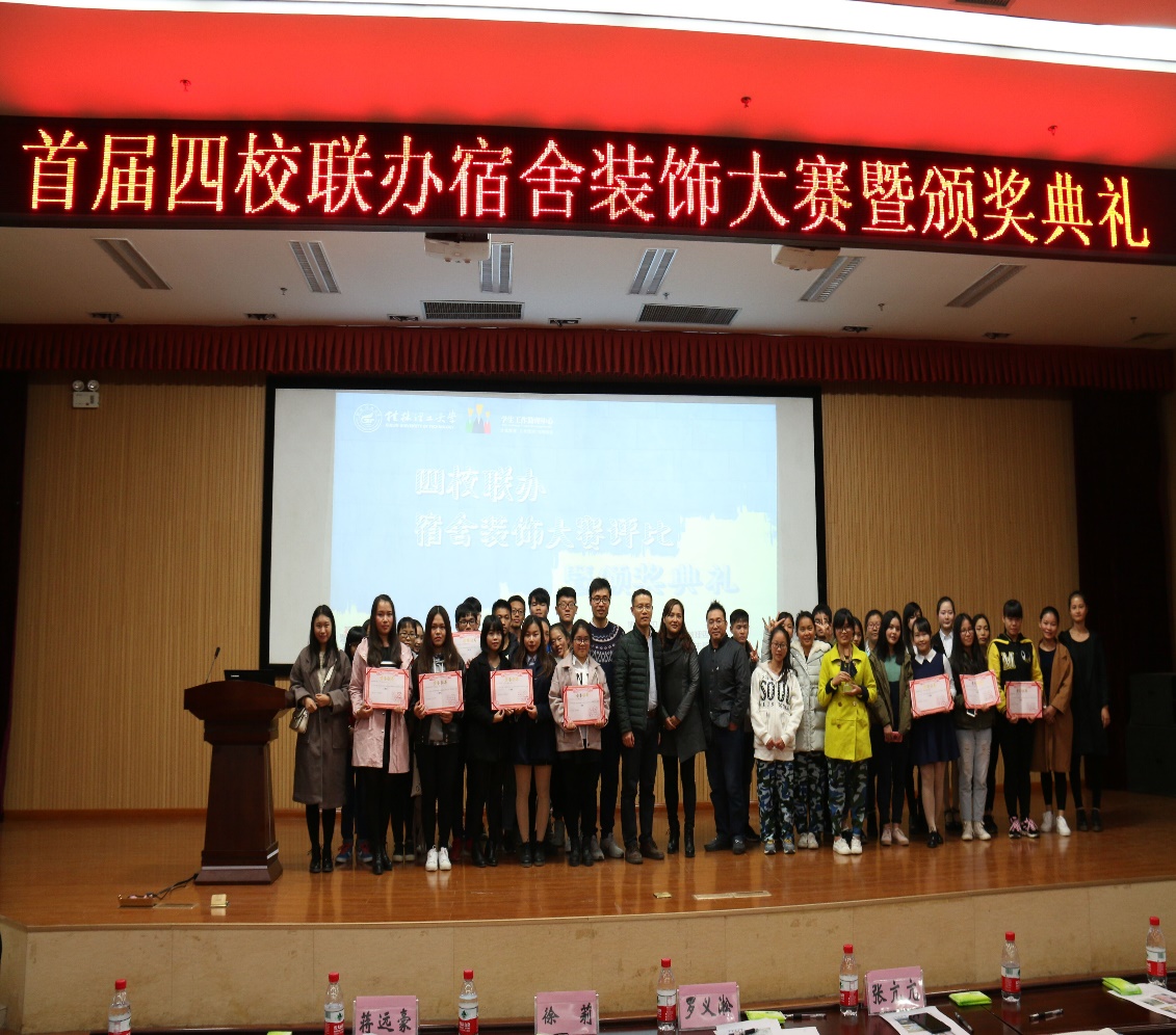 2016年12月9日晚7点在雁山校区图书馆报告厅隆重举行第一届由桂林理工大学、广西师范大学、桂林旅游学院、广西师范大学漓江学院四校联办宿舍装饰大赛决赛,旅游学院23栋507宿舍作为代表出战。她们以乌托邦为宿舍雅号,以温馨为宿舍主题。高瑾同学饱含深情的讲解述说着她们对宿舍的爱和伙伴之间的情谊。最后经过四校评委代表点评打分,23栋507宿舍荣获二等奖。