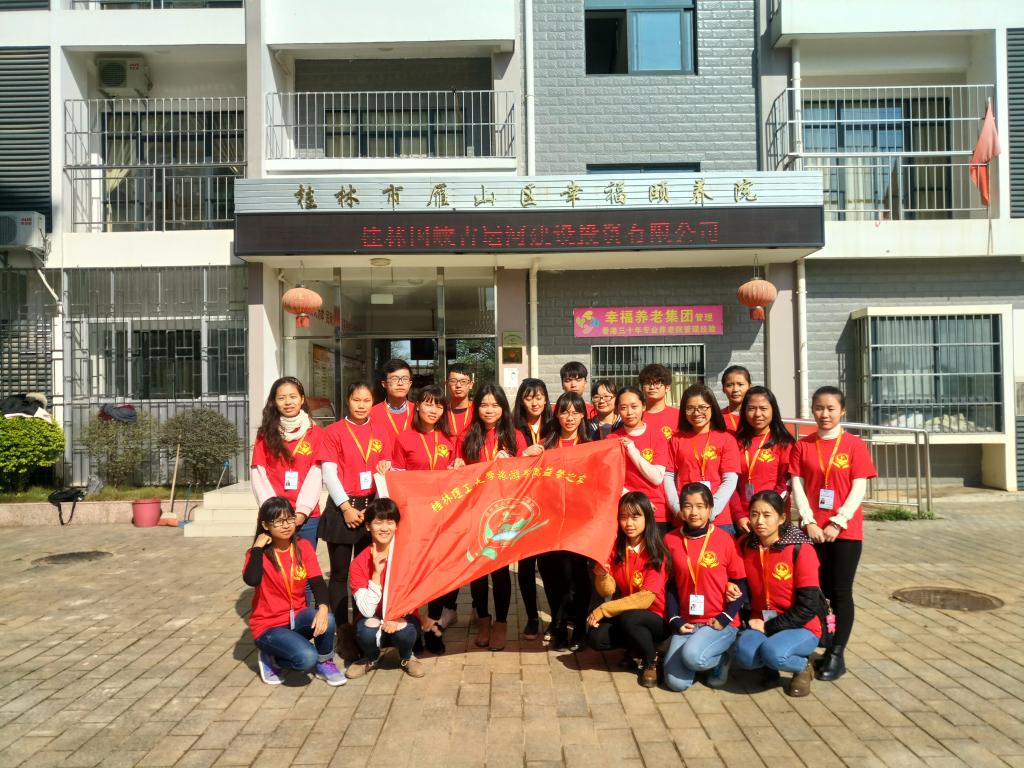 为弘扬中华民族尊老、敬老、爱老的传统美德,发扬公益精神,提高同学们的社会实践能力和社会感恩意识,旅游益馨之家主办、易班学生工作站协办于2016年11月26日上午组织志愿者赴桂林市雁山区幸福颐养院看望孤寡老人。本次活动以“献爱心,暖夕阳”为主题。