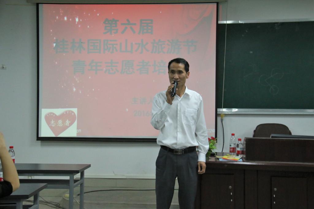 随着国际山水文化旅游节的临近,旅游学院一批优秀的志愿者们在桂林市团市委、旅发委的指导下进行了志愿者技能培训。团市委韩永华部长、旅发委黄剑老师一行四人莅临现场。培训会由旅游学院团委书记李少华老师主持。