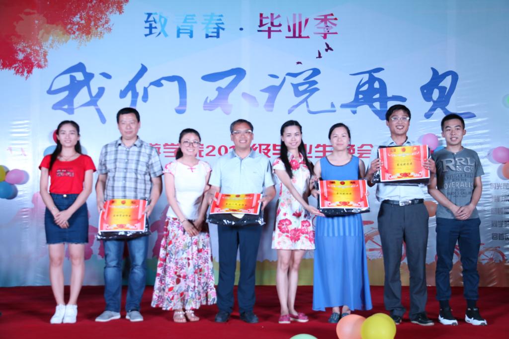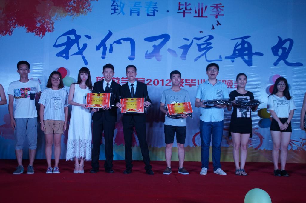 通过晚会前网上的投票,由同学们投票产生最具气质奖等老师及学生的奖项。李少华老师获得最佳男保姆,张露萍老师获得最佳女保姆,段文军获得最佳人气老师,吴忠军老师获得最帅男老师,吕华鲜获得最具气质女老师,晨星同学获得最佳人气将,梁增光同学获最牛屌丝奖,陈耀才获得旅院男神,谭昭萍同学旅院女生,王潇涵、张华天获得最佳郎才女貌情侣奖。获奖毕业生们表达了自己内心对旅游学院深深地不舍及对老师过往的辛勤教导的感谢,获奖老师们也表达了对毕业生的不舍以及对他们未来的美好祝福。