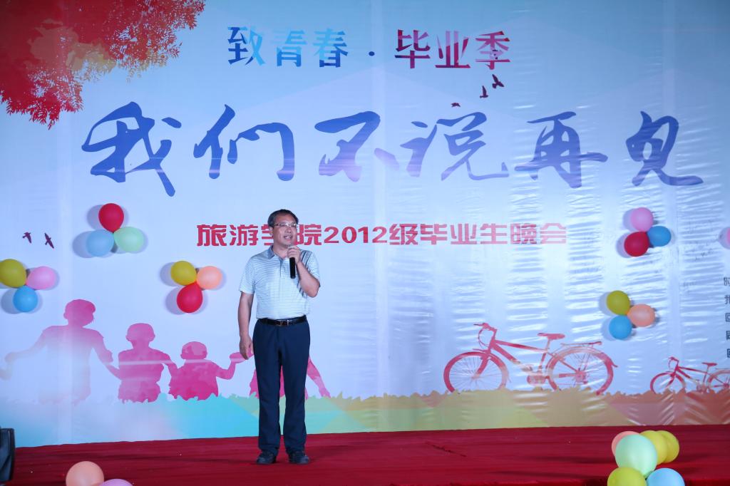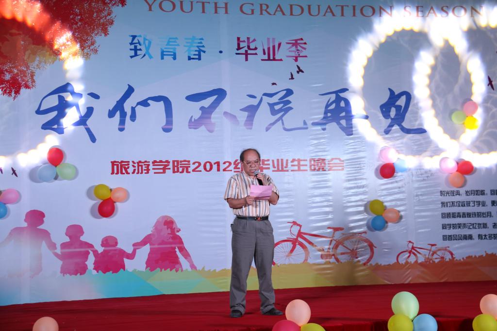驿路漫漫欢人聚,风华正茂将别离。又是一年花开之际,又是一年毕业之时。一样的季节与感伤,不一样的回忆与留恋。2016年6月7日晚19:30,桂林理工大学旅游学院在雁山校区三栋广场举办了一场以“致青春,毕业季,我们不说再见”为主题的2016届毕业生晚会。出席此次晚会的嘉宾有旅游学院书记李少游、院长吴忠军、副书记叶婷、副院长郑文俊,院长助理段文军及各年级辅导员及部分专业教师,旅游学院2016届全体毕业生观看了本场晚会。