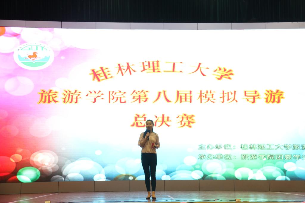 5月20日晚,旅游学院第八届模拟导游大赛决赛在雁山体育馆如期而至。旅游管理教研室主任贺剑武、学院团委书记李少华、酒店管理教研室教师安启以及12级学生高丽萍、钟佩和赵晓亮出席本次比赛并担任评委。各学院的代表们及大一全体学生观看了本次比赛。决赛的比赛内容包括景点的PPT讲解、模拟情景剧表演、才艺拉票3个环节。