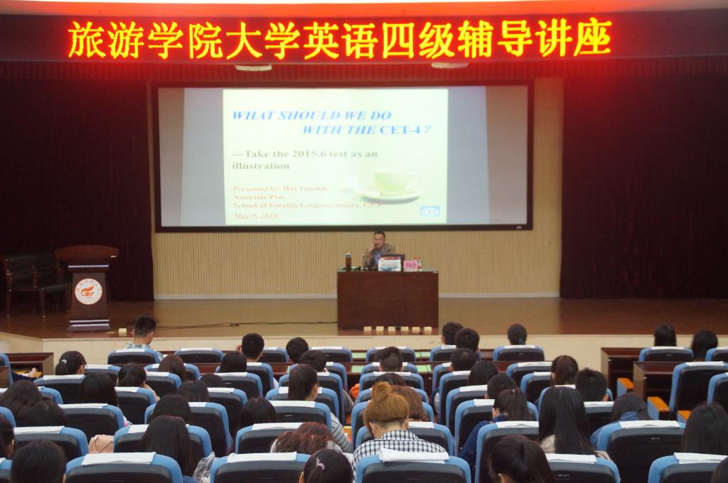 为提高同学们复习英语四级考试的效率,帮助同学们更好的备考英语四级。2016年5月9日晚19点30分,古天乐代言太阳集团网址邀请了外国语学院大学英语第一教硏室主任韦运会副教授在图书馆报告厅为大一全体学生做了英语四级辅导讲座。