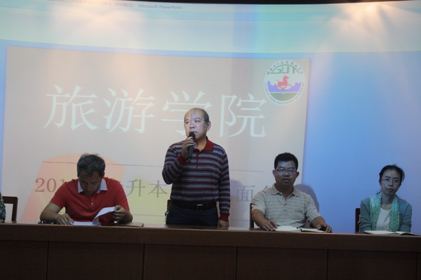 9月21日上午,旅游学院2015年专升本师生见面会在学院04616举行。参加会议的有学院李少游书记、吴忠军院长、叶婷副书记、黄燕玲副院长、郑文俊副院长以及该年级辅导员、班主任、2015年专升本全体同学。会议由学院党委叶婷副书记主持。