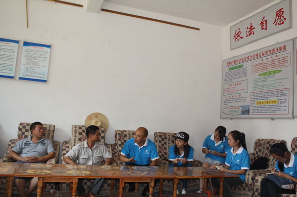 早上8:30,太阳已非常猛烈,漓江水面波光粼粼,我们乘船来到渔村村委会。在这里我们受到了渔村赵支书等负责人的热情接待。首先,苑守瑞老师对该村负责人的热情接待表示了感谢,并说明了古天乐代言太阳集团网址暑期社会实践团前来的目的。接着,赵支书给我们详细介绍了关于渔村的经济社会现状,在座谈会中,赵支书还耐心地解答了同学们提出的关于渔村旅游资源情况等方面的问题。最后,同学们还查阅了该村经济社会及旅游资源等方面的资料,对渔村的经济社会状况有了较为全面的认识,也为我们接下来开展旅游项目策划,景观设计等工作打下了良好的基础。