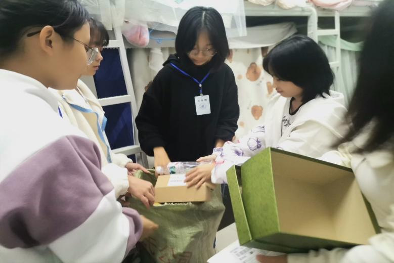 “好的,谢谢,祝您周末愉快”,每收获一些废品,大家都会礼貌地表达感谢之情。随着时间的推移,编织袋里装满了快递箱、矿泉水瓶等废品,同学们都乐于为节约资源,净化校园贡献自己的力量。