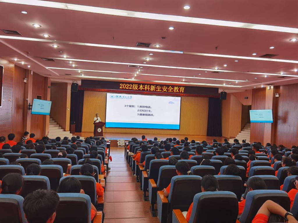 为切实加强新生安全教育工作,树牢底线思维,保障学生生命安全,9月30日下午,我院在雁山校区图书馆报告厅举行2022级新生安全教育“开学第一课”。本次课程由学院党委副书记罗义淞为同学们讲授。